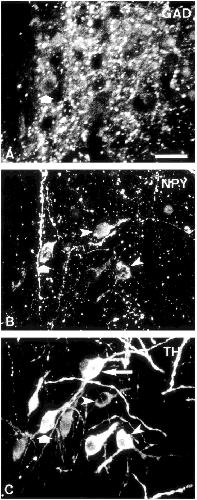 glutamic acid decarboxylase (GAD; A), neuropeptide Y (NPY; B), and