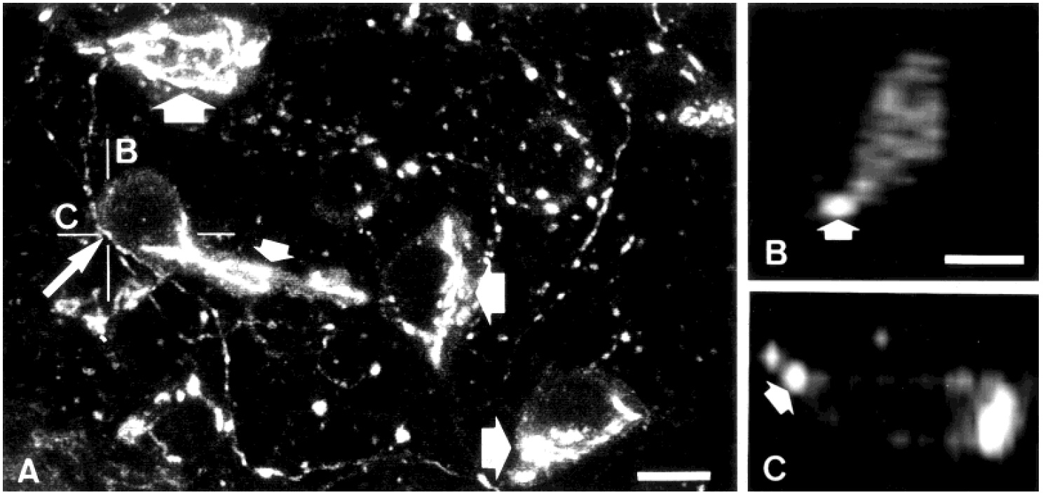 Large arrowheads indicate varicosities that were mainly stained for