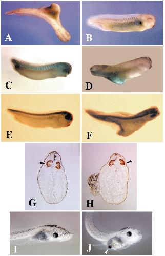 eyes (J, arrowhead). (I) Uninjected control. |
