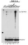 Fig. 6. Expression of XeHAND in adult frog tissues. The distribution of XeHAND mRNA in adult frog tissues was analysed by RNase protection assay. Lane 1, undigested probes; lane 2, tRNA control; lanes 3â11, tad- pole embryo (stage 34), intestine, stomach, gall bladder, spleen, skeletal, heart, lung, liver RNA, respectively. Five micrograms of total RNA was used in each assay. Full-length protected fragments for each probe are indicated. As an internal control, a probe for the highly abundant EF1-a was included in the XeHAND assay.