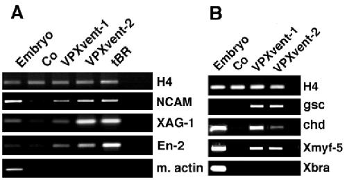 expression of marker genes indicated. (B) Induction of organizerspecific
