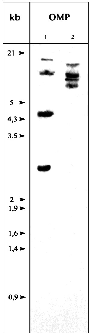 were analyzed on Southern blots by using labeled XOMP-subtype
