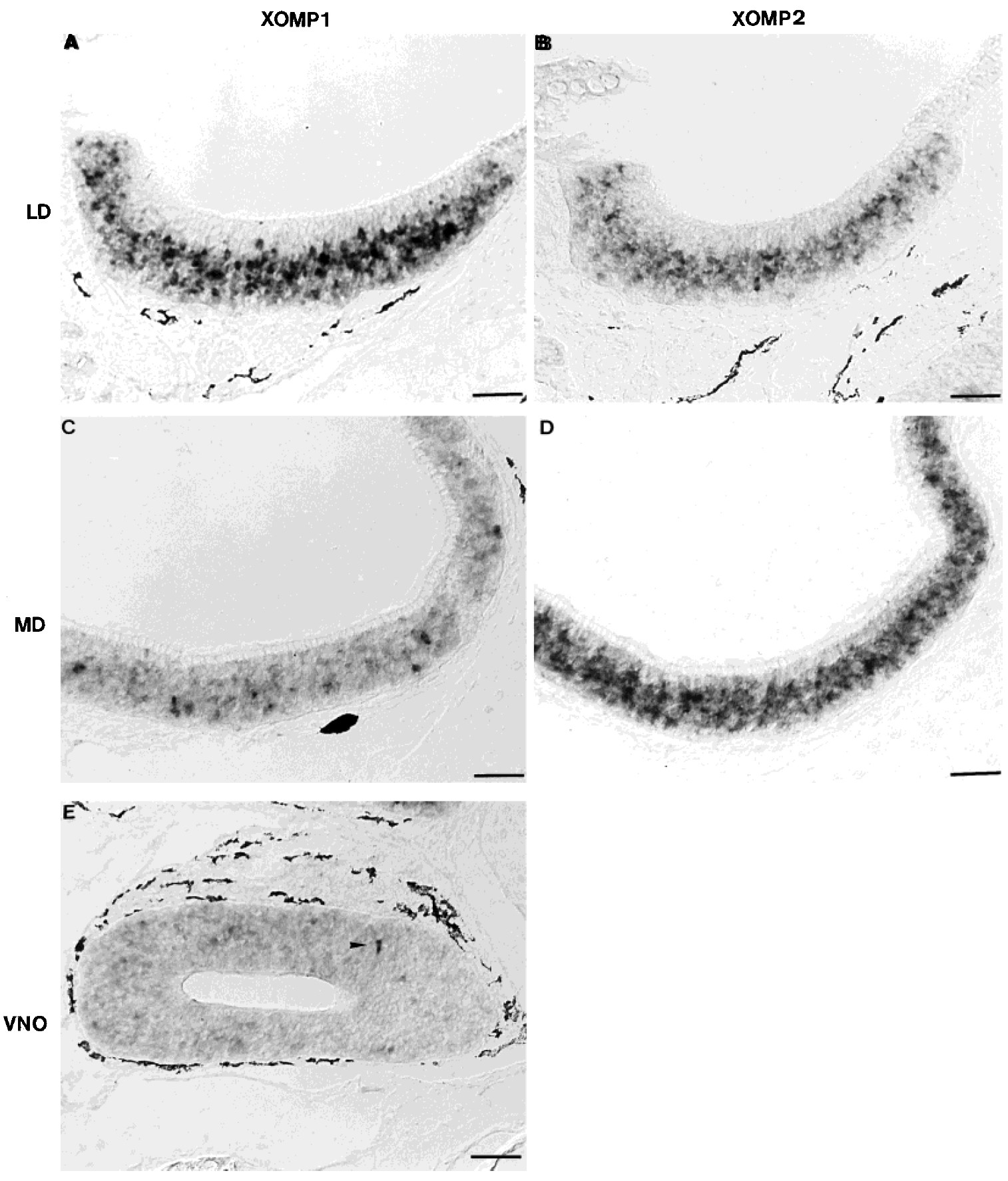 XOMP2 was preferentially expressed. In the VNO, small amounts of