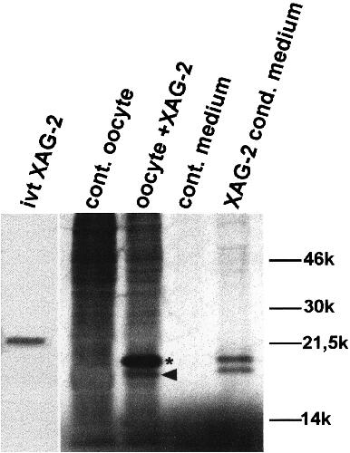 XAG-2-injected oocytes (XAG-2 cond. medium) is shown. Note that