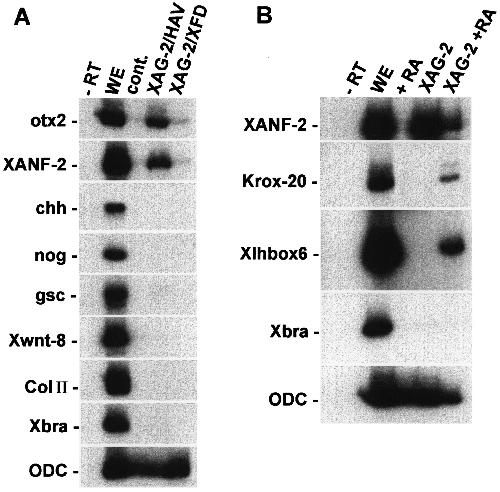 Activation of the posterior neural markers Krox20 and Xlhbox6 concomitant with reduction of XANF-2 expression demonstrates transformation of XAG-2