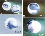 the cement gland anlage (albino embryo in the middle). Pigmented wildtype embryo on the right shows specific expression of XAG-2 mRNA in the