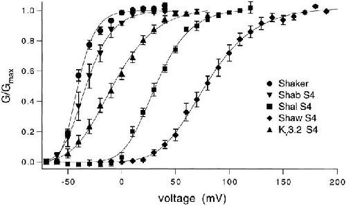 Logothetis, Gating charge differences between two voltage-gated K+ channels are due to the specific charge content of their respective S4 regions. 1993, Pubmed , Xenbase
