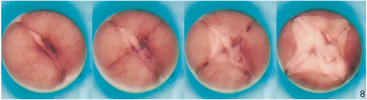 D. In C, the surface had entirely flattened out, and the embryo resembled the live one shown in Fig. 8. Bar 50 mm. |