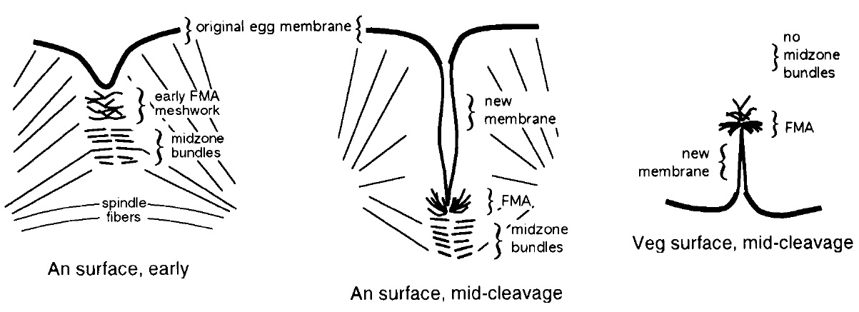 spindle poles. As the furrow deepens and new membrane is inserted along the cleavage plane, a prominent FMA develops at the furrow
