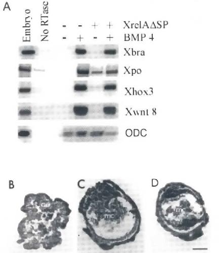 Fig. 7, XrelAjSP does not inhibit the induction of mesoderm by BMP-4. Animal caps