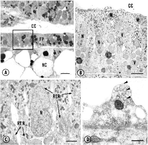 to RF and free surface of FP cells (open arrows). C: Detailed