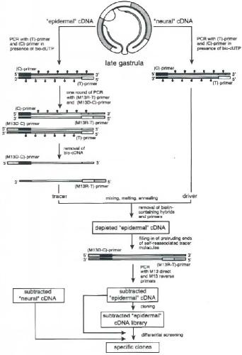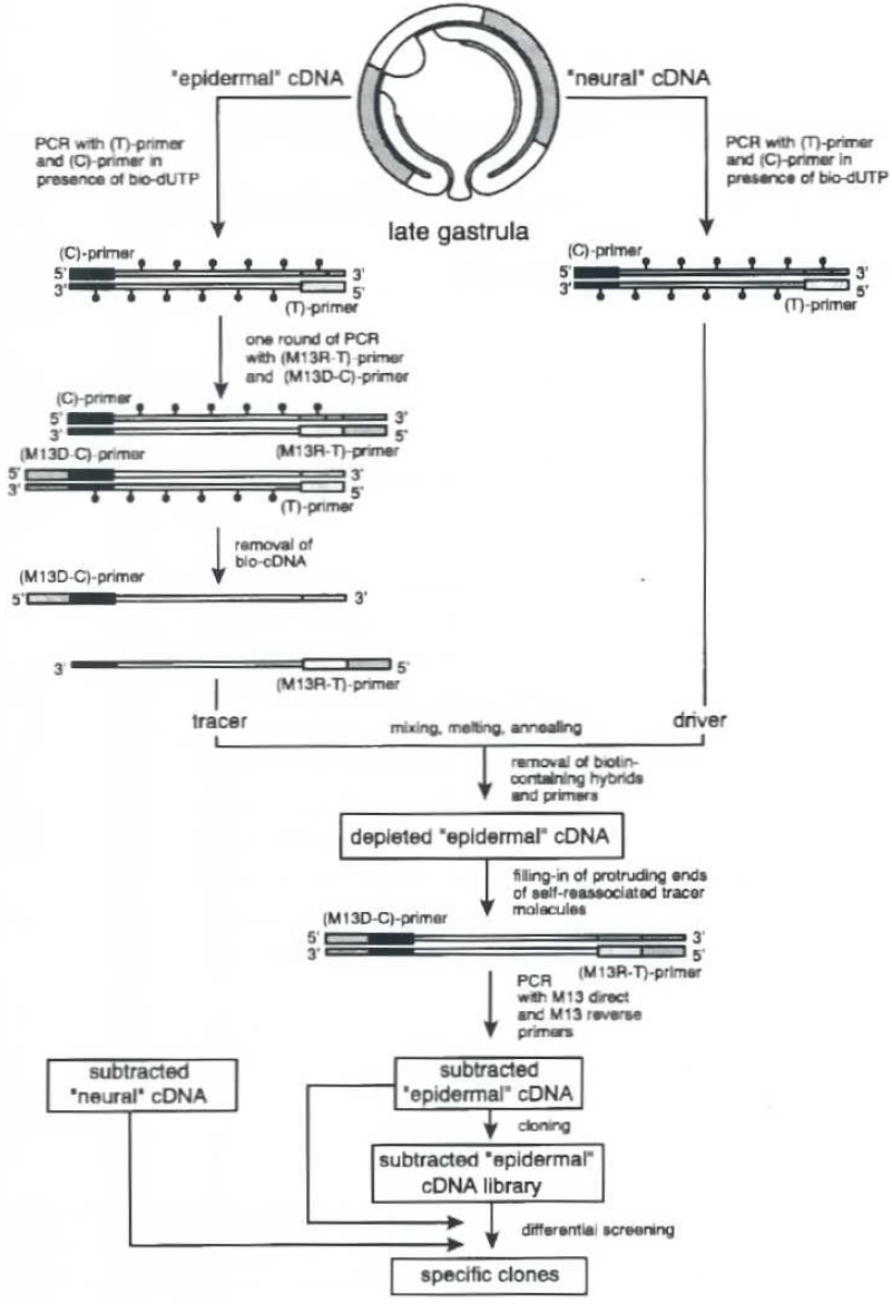 Fig. 1. A scheme of subtractive cloning of epidermis-specific sequences,