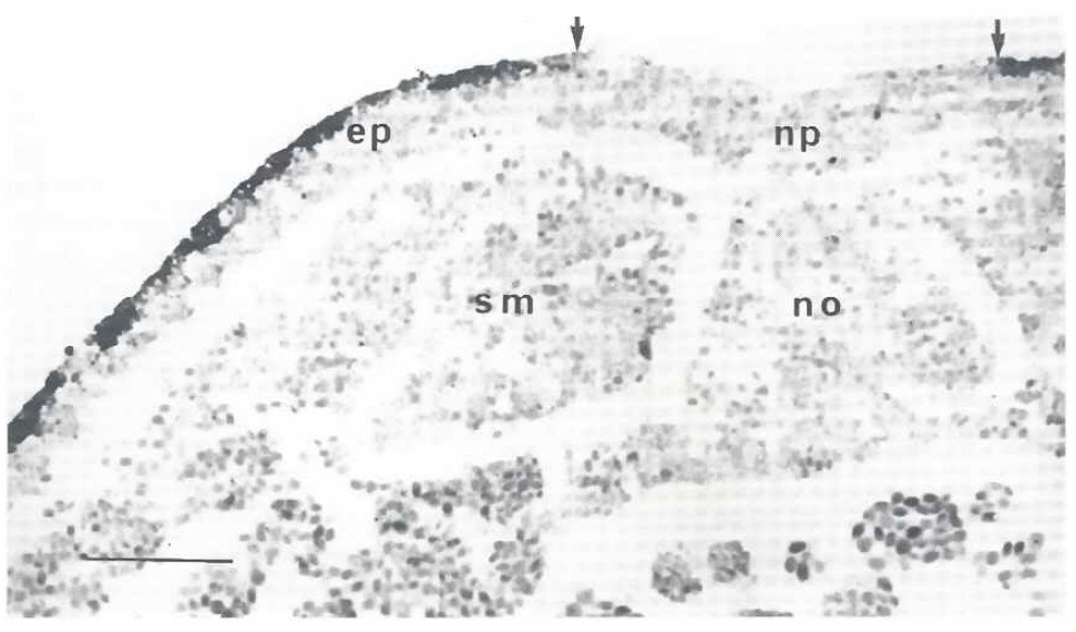 epidermis; np, neural plate; no, notochord,' sm, somite.