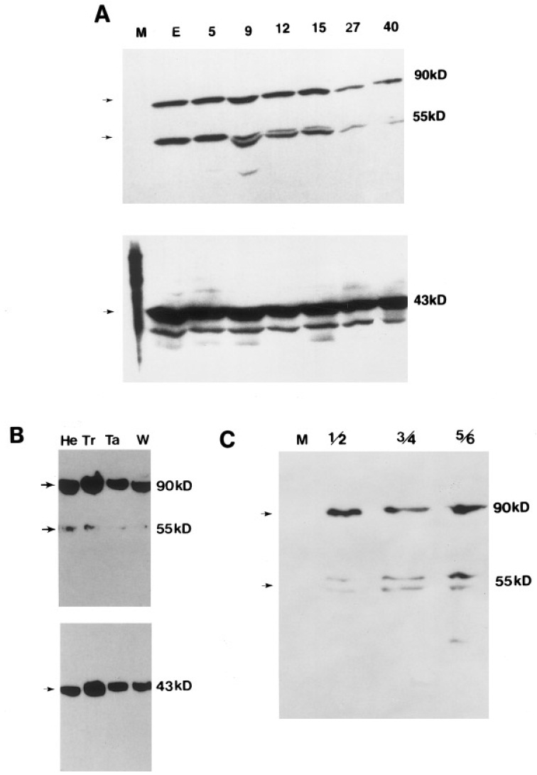 FIG. 7. Western blots of (A) early-gastrula embryos dissected into