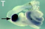 Arrow heads= olfactory bulb; arrows =forebrain. |