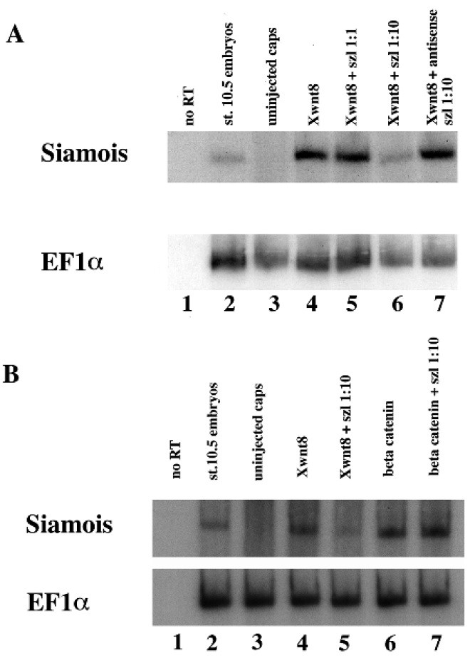 lane 7: caps injected with 250 pg Xwnt8 and 2.5 ng antisense szl
