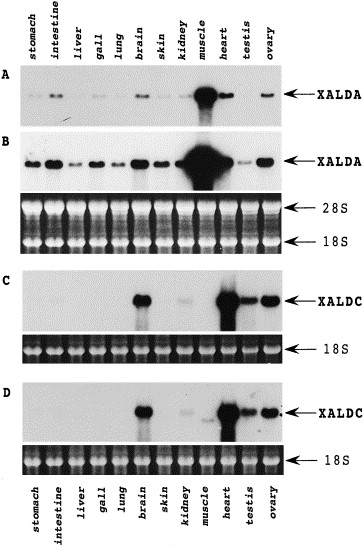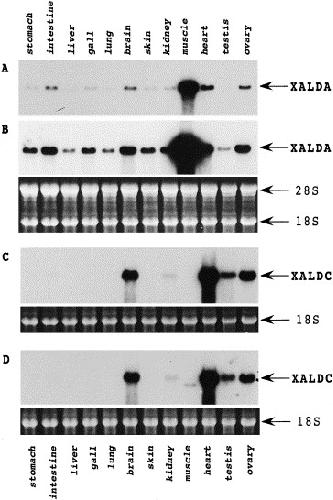 Fig. 4. Distribution of XALDA mRNA in adult tissues. RNAs