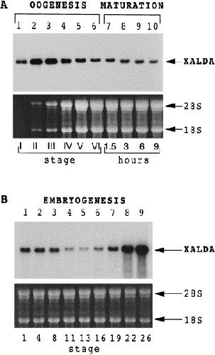 and embryos at different stages and subjected to Northern
