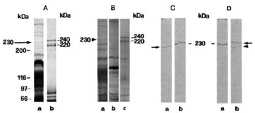 antibody. Lane a, immunoreactivity at the 220 kDa b spectrin. Lane