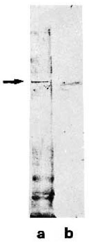 the arrow. Lane b, human ghost erythrocyte incubated with the same