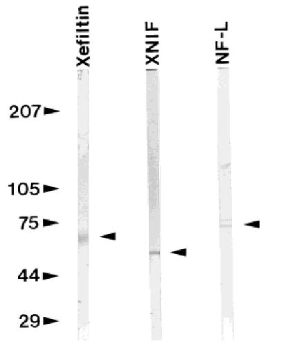 xefiltin, XNIF, and Xenopus NF-L. Labeled arrowheads