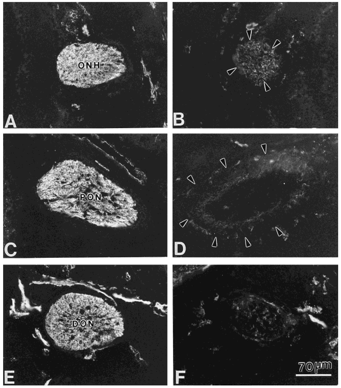 segment of the optic nerve (DON) , near the level illustrated by Figure 1(C). Arrowheads in