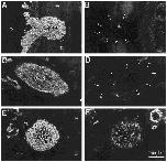Figure 8 Xefiltin immunostaining in the regenerating optic nerve (B,D,F) compared to that