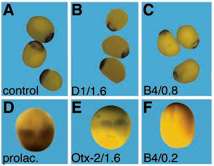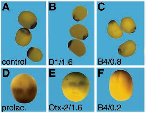 embryo injected with prolactin mRNA. (B) Embryo injected with 0.2