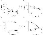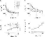 Figure 11. Intracellular I− concentration dependence of hClC-1 deactivation. Reciprocal deactivation time constants determined at six different test potentials in the presence of different intra-cellular I− concentrations. (A) I− concentration dependence of the fast deactivation time constant (τ1). (B) I− concentration dependence of the slow deactivation time constant (τ2). In A and B, solid lines represent fitted hyperbola to the measured data (see text), and each point represents mean ± SEM for at least three cells. (C) Voltage dependence of KD determined from data fits shown in A and B. (•) Fast deactivating state, (□) slow deactivating state. Lines indicate Woodhull fits: KD = KD(0 mV) eFδV/RT, where KD(0 mV) denotes the estimated value at a membrane potential of 0 mV and δ the electrical distance measured from the extracellular side of the membrane. (D) Voltage dependence of τmin for the derived values for fast (τ1, •) and slow (τ2, □) deactivation time constants. |