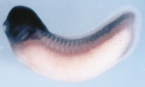 fkbp1a (FK506 binding protein 1A ) gene expression in Xenopus laevis embryo, assayed via in situ hybridization, NF stage 31, lateral view, anteriorleft, dorsal up.