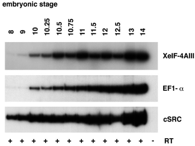 XeIF-4AIII expression during development. cSRC and EF1-a are