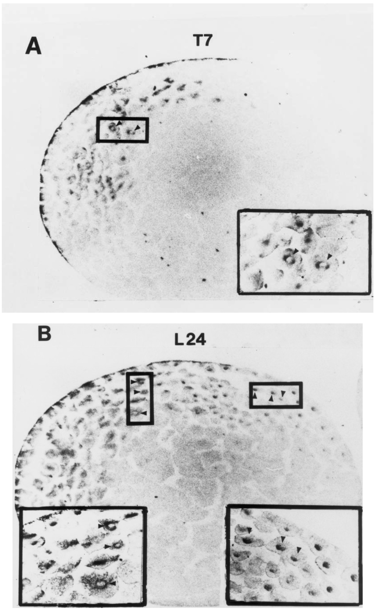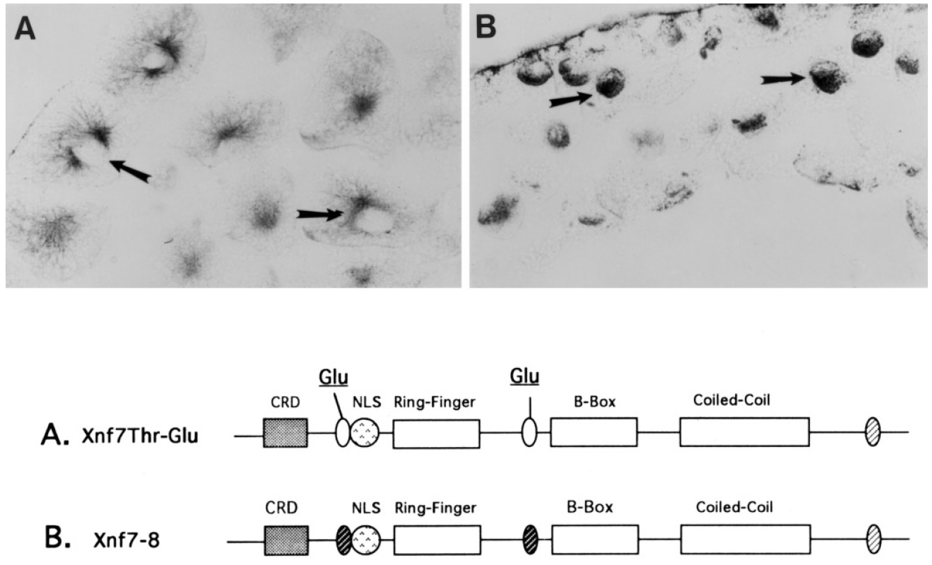 protein). (A) A section stained with the T7 antibody showing that the dnxnf7 protein was, as expected, expressed in only a portion of the