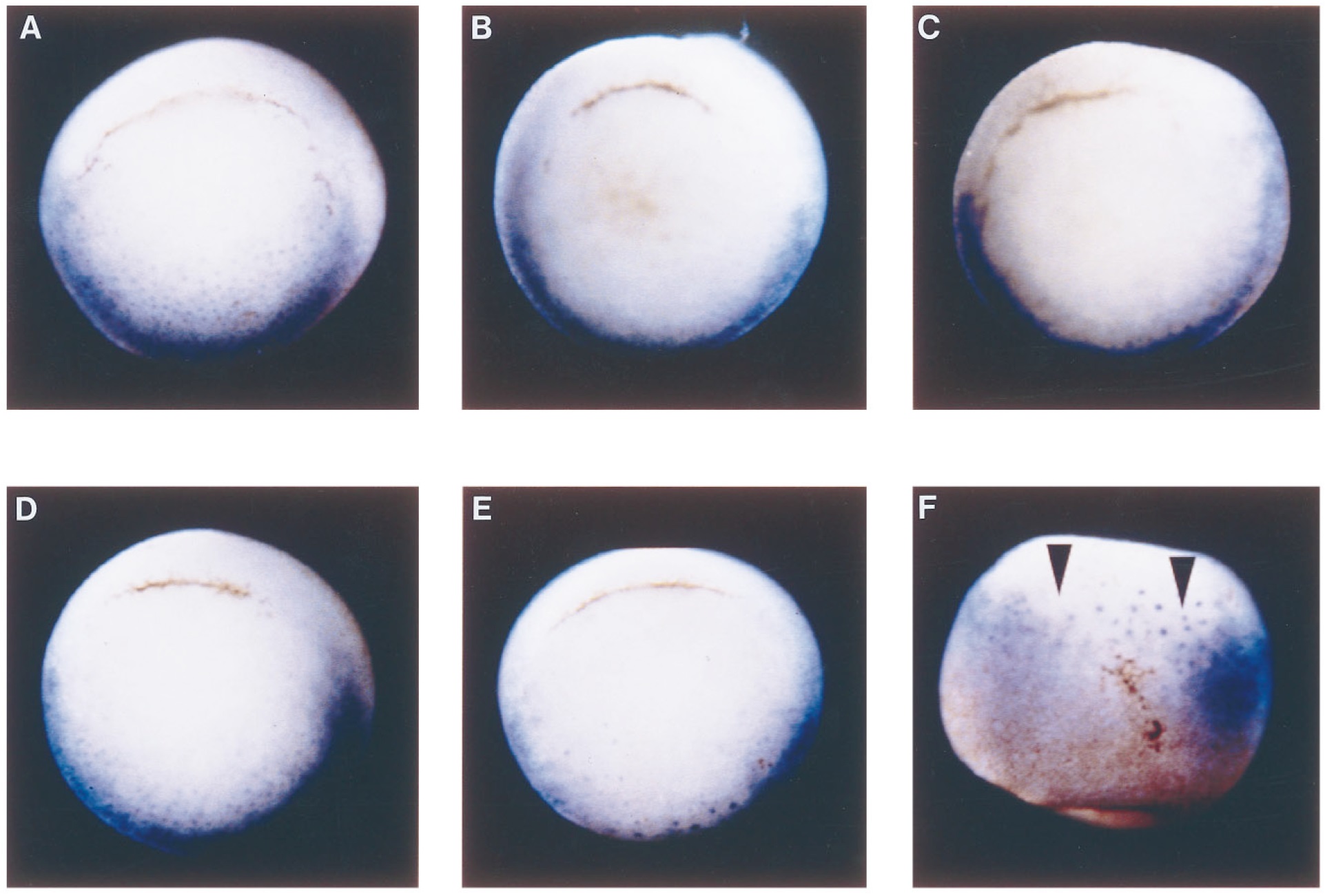 any mutant phenotypes. (A) The appearance of the dorsal lip in both control (xnf7-8 injected) (c) and dnxnf7 mRNA-injected embryos (m).