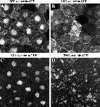 Figure 2. Localization of wild-type and mutant β-cateninâGFP proteins in animal cap cells. The intracellular distribution of each mutant was determined by confocal microscopy (AâD). The WTâ β-cateninâGFP protein (A) is localized to the plasma membrane, cytosol, and nucleus in a pattern indistinguishable from that seen for endogenous β-catenin protein (Yost et al., 1996). NESâβ-cateninâGFP (B) is present at plasma membrane and at high levels in the cytoplasm. Low levels of fluorescence are detected in the nucleus, which likely reflects the fact that the NES domain does not inhibit nuclear entry but instead promotes the rapid export of tagged proteins from the nucleus. NLSâβ-cateninâGFP (C) is predominantly found in the nucleus, and very little fluorescence is observed in the cytoplasm or in association with the plasma membrane. The TMâβ-cateninâGFP mutant (D) localizes to intracellular vesicles and organelles in apparent association with the endoplasmic reticulum and Golgi apparatus. TMâβ-cateninâGFP fluorescence was never detected in the nucleus.