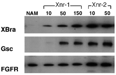 mesodermal marker, Gsc, and the constitutive marker, FGFR. NAM