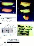 Figure 6. âEmbryonic expression of Xqua mRNA. Whole-mount in situ hybridization using an RNA probe specific to the 5-kb embryonic form of Xqua. (A) Lateral view of a stage 11 gastrula embryo shows that transcripts are first detected in the chordamesoderm of the dorsal blastopore lip. (B) By late gastrula, Xqua is strongly expressed in the notochord with weak expression in the circumblastoporal region (B, embryo on the right, dorsal view). Embryos hybridized with sense strand control probes (B, embryo on the left) show no staining. In neurula embryos (stage 18) (C, dorsal view;D, posterior view; E, anterior view), the expression domain has expanded to include the notochord, paraxial mesoderm, circumblastoporal region, and the neural plate. In tailbud embryos (stages 24â30) (F,G), Xqua is strongly expressed in the brain and neural tube, the developing heart, tail blastema, and branchial arches. (G) By late tailbud (stage 30), the expression in the notochord and somites is declining. (H) Cross sections through the head of the stage 30 whole-mount embryo show that expression in the brain is largely restricted to the ventricular and marginal zones and the floor plate. (I) Later in development at hatched tadpole stage, Xqua expression is almost exclusively in the head and heart. (anp) Anterior neural plate; (bp) blastopore; (dl) dorsal lip; (h) heart; (n) notochord. |