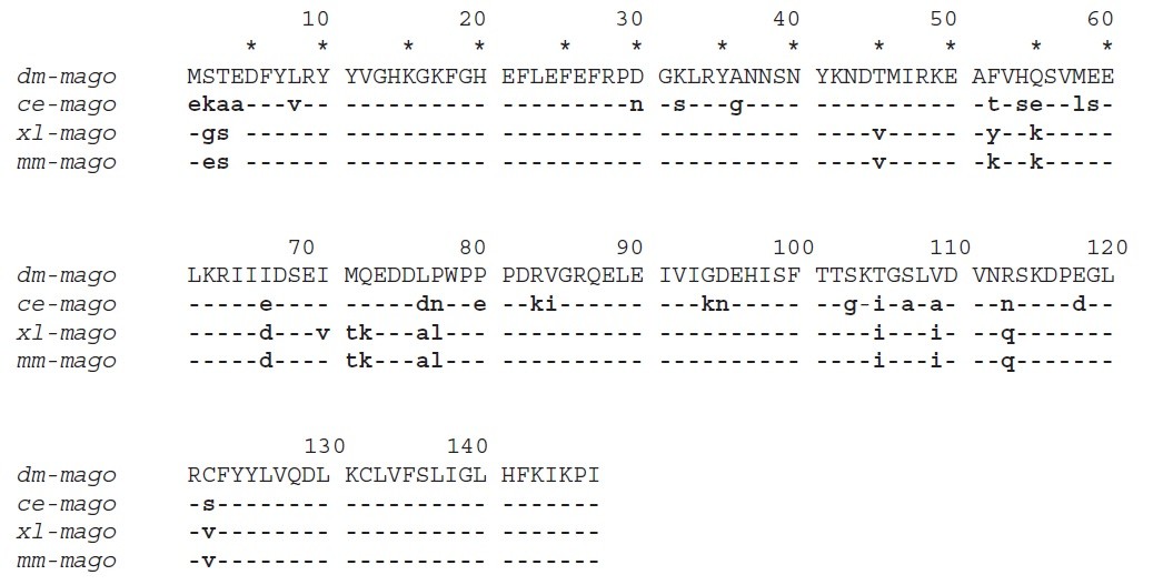 Establishment of the anteroposterior and dorsoventral axes in the Drosophila egg chamber requires reciprocal signaling between the germ line and soma. Upon activation of the Drosophila EGF receptor in the posterior follicle cells, these cells signal back to the oocyte, resulting in a reorganization of the oocyte cytoplasm and anterodorsal migration of the oocyte nucleus. We demonstrate that the gene mago nashi (mago) encodes an evolutionarily conserved protein that must be localized within the posterior pole plasm for germ-plasm assembly and Caenorhabditis elegans mago is a functional homologue of Drosophila mago. In the absence of mago+ function during oogenesis, the anteroposterior and dorsoventral coordinates of the oocyte are not specified and the germ plasm fails to assemble.
