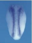 msx1 (msh homeobox 1) gene expression in Xenopus laevis embryo via in situ hybridization, NF stage 13-14, dorsal view, anterior up.
