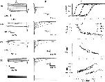 Figure 2. Macroscopic currents from cell-attached patch recordings of the various channel types. (A) Activation currents were induced by depolarizing pulses from a −100-mV holding potential to potentials of: −50 to 100 mV (SN); −80 to 100 mV (SNS); −80 to 30 mV (SNG); and −80 to 60 mV (SS); all in steps of 10 mV except 20 mV for SNS. The post pulse was −140 mV. (B) Tail currents were recorded at voltages of −70 to −150 mV (SN) and −110 to −170 mV (SNS, SNG, and SS) after prepulses to 40 mV (SN) or 0 mV (SNS, SNG, and SS). Potassium ion concentration was 140 mM on each side of the patch. Currents were filtered at 1 kHz. Note the different time scale for SN currents. (C) Representative G-V curves for each channel type, calculated from the macroscopic currents assuming a linear I -V relationship. Superimposed on each curve is a fit of a Boltzmann function. The midpoint voltage V1/2 and effective charge q for each channel type were −41.7 ± 2.7 mV, 5.1 ± 1.1 e0 (SN, n = 3); −66.3 ± 3.4 mV, 7.5 ± 1.2 e0 (SNS, n = 6); −87.9 ± 1.9 mV, 9.2 ± 0.8 e0 (SNG, n = 3); −66.8 ± 2.8 mV, 10.7 ± 1.6 e0 (SS, n = 4). (D) Voltage dependence of the activation time constant τa, estimated by fits of an exponential function to the activation time course, starting from the time when the amplitude is 50% of the final value. (E) Voltage dependence of the activation delay time δa obtained in the same fits as the time at which the extrapolated exponential crosses the current baseline. (F) Voltage dependence of deactivation time constants τd estimated by single-exponential fits. The apparent charge q was 0.80 e0 (SN), 0.96 e0 (SNS), 0.84 e0 (SNG), and 0.83 e0 (SS), as estimated by fitting the last five data points (lines) with the exponential function τ(V) = τ(0)exp(qV/kT). |