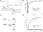 Figure 6. Sublevels of the SNS single-channel current during activation. (A) Representative traces at −70 mV. Solid lines show channel closed and open levels; dashed lines (θ1, θ2, and θ3) are thresholds at 10, 50, and 85% of the open amplitude. In the upper trace, the channel spends t1 = 2.9 ms in the sub1 state and t2 = 3.9 ms in the sub2 state before reaching the open state. In the lower trace, the channel appears to open instantaneously into sub2, but a finite t1 is measured because of filtering. Filter bandwidth is 1 kHz. (B) Cumulative histogram of measured dwell times t1 in sub1 (solid curve) accumulated from 140 events. The dashed curve is the cumulative distribution from a simulation of 250 events with mean lifetime τSub1 and fraction fSub1 of nonzero dwells in sub1 as given. (C) A scheme for channel activation that accounts for the distributions of t1 and t2. Channels can open through two distinct pathways, allowing sub1 to be skipped but always traversing sub2. (D) Cumulative histogram of 140 dwell times at sublevel sub2. The dashed curve is from a simulation of 250 events with the given mean dwell time and fraction of nonzero dwells. |