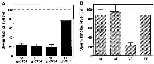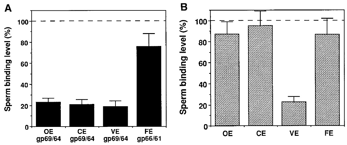 VE, and gp66/61 from FE were used as competitors in the sperm binding competition assays. (B) Heat-dissolved total envelope proteins