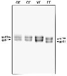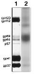 FIG. 2. Western blot showing the presence of gp69/64 glycoproteins in the OE, CE, and VE, and the modified forms, gp66/61, in the FE. Total envelope glycoproteins (1.5 mg) purified from different sources were separated by 7.5% SDSâPAGE and electroblotted onto a nitro- cellulose membrane. Polyclonal anti-gp69/64 was used as primary antibody for the immunoblot. See Materials and Methods for details.