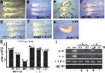 Fig. 6. Superficial defects induced by injection with xDalMO. (A) Inhibition of xDalMO for xDal translation was examined. XDal (UTR-1293)âmyc, which contains the sequence for xDalMO, was co-injected with 40 ng of standard control MO (lane 3) or xDalMO (10 ng, lane 4; 20 ng, lane 5) into embryos. These embryos were harvested at stage 12, and western blot analysis was performed with an anti-myc antibody (column 1). Anti-α-tubulin antibody (column 2) was also used as a quantitative control. When 20 ng of xDalMO was co-injected with xDal (UTR-1293)âmyc, xDal translation was effectively suppressed (lanes 2â5). In contrast, xDalMO did not inhibit mycâxDal, which contains no sequence for xDalMO (lanes 6 and 7). (B, C) Superficial phenotypes of the embryos injected with xDalMO (B) or xDalMO and 500 pg of xDal mRNA (C) into dorsal blastomeres of four-cell embryos. When xdalMO was injected, short axis and weak head defect was observed (B). Co-injection with xDal mRNA completely rescued both phenotypes (C). (DâF) xDalMO inhibited xdsh-induced secondary axis formation. Xdsh (500 pg, D), xdsh and xDalMO (500 pg and 20 ng, E; 500 pg and 40 ng, F) were injected into a ventro-vegetal portion of the embryo. When xDalMO was co-injected, secondary axis formation by xdsh was almost completely suppressed (F). (GâI) Co-injection assay with β-catenin and xDalMO. β-Catenin (500 pg, G) or β-catenin and xDalMO (500 pg and 20 ng, H; 500 pg and 40 ng, I) were injected into a ventro-vegetal portion of the embryo. Co-injection with β-catenin and xDalMO still showed complete secondary axis (I). (J) These results are shown by two graphs. The percentage of incomplete axis and complete axis formation is shown by open and filled bars, respectively. |