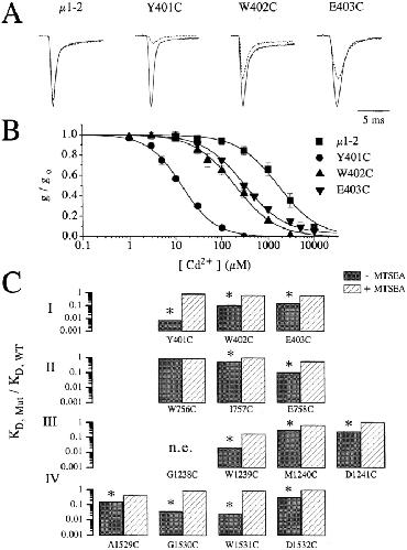 P-loop flexibility in Na+ channel pores revealed by single- and double-cysteine replacements.