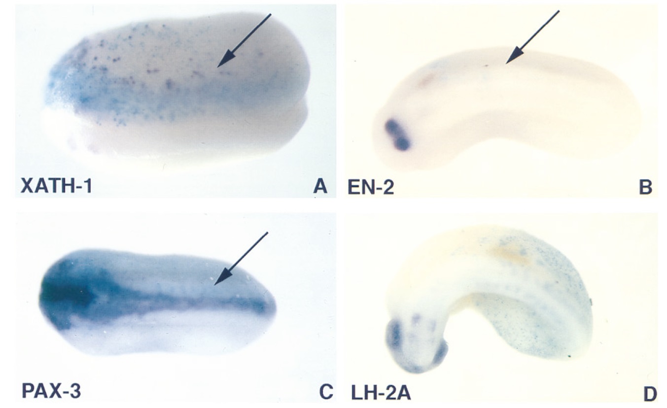 embryo. (A) XATH-1. (B) engrailed-2. (C) PAX-3. (D) LH-2A.