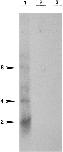 Fig. 3. Northern blot analysis of X5-HT1A receptor mRNA in Xenopus brain (lane 1), heart (lane 2) and liver (lane 3). Three mRNAs (2, 4 and 8 kb) are present only in the brain.