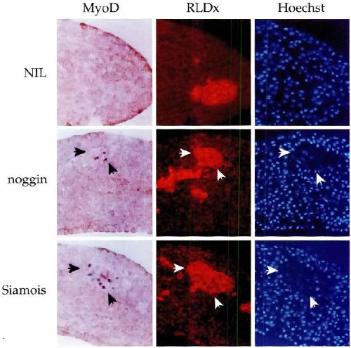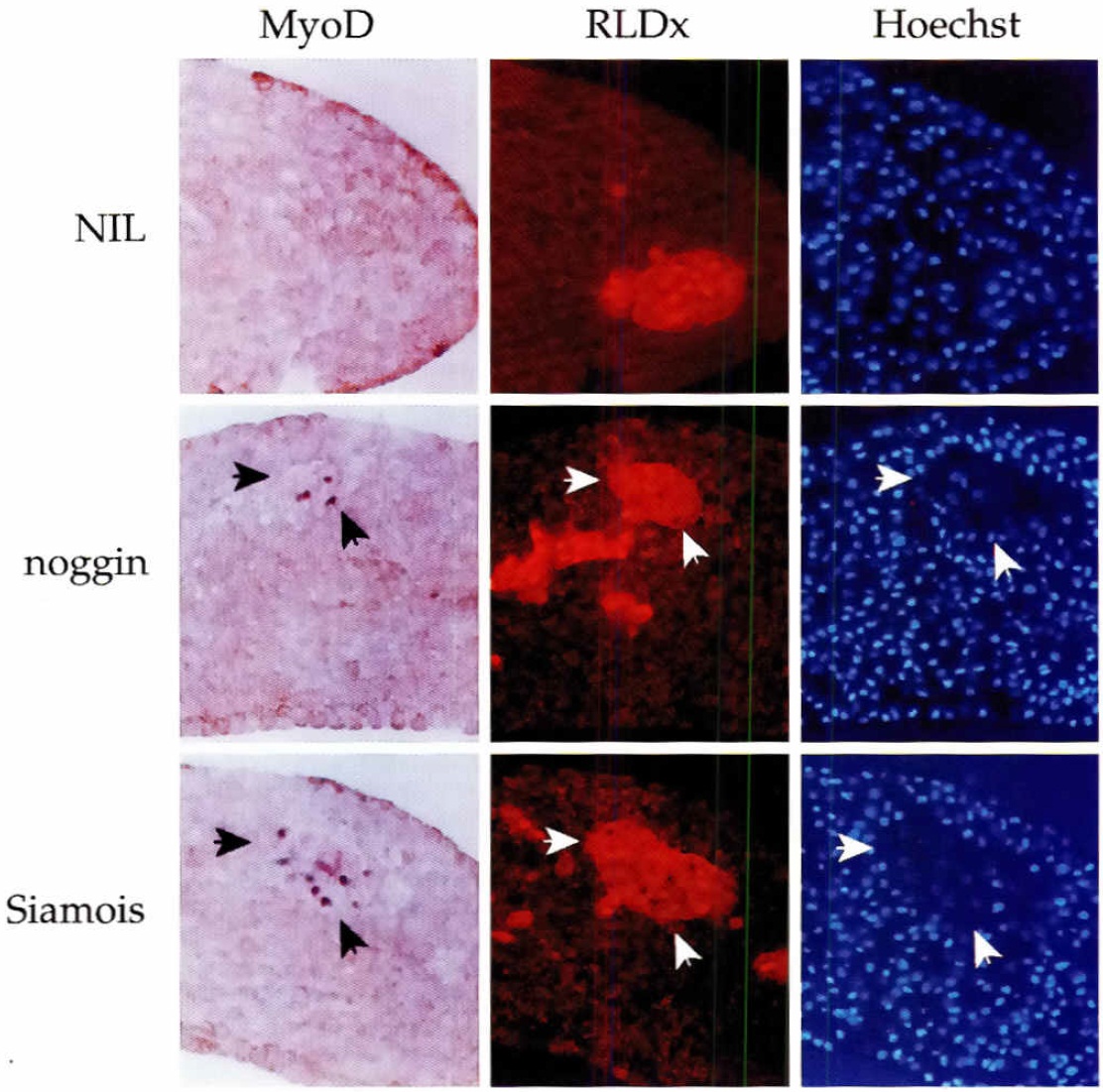 MyoD. In noggin and Siamois injected sandwiches. at leasr 15 adjacenr
