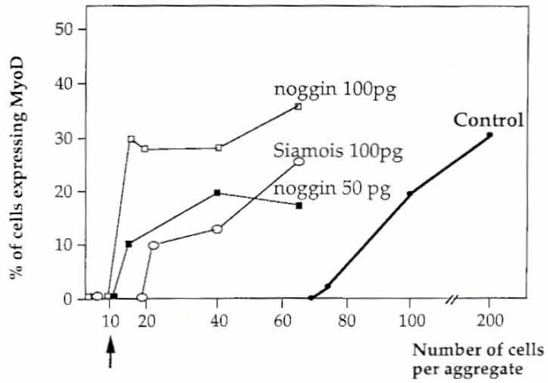 Fig. 3. Siamois and noggin reduce the size of a reaggregate required