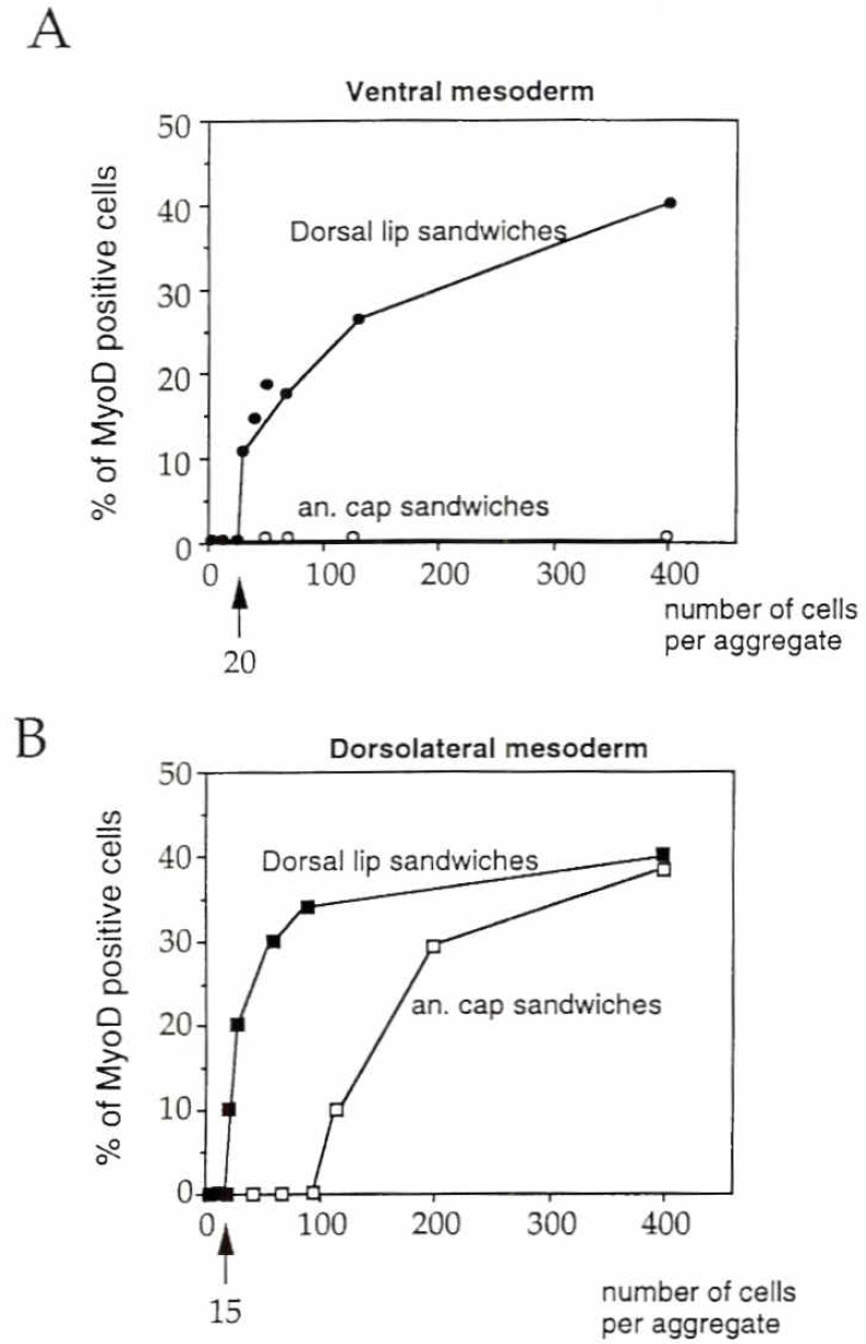 to express MyoD. At least 15 cells must be enclosed in a reaggregate for