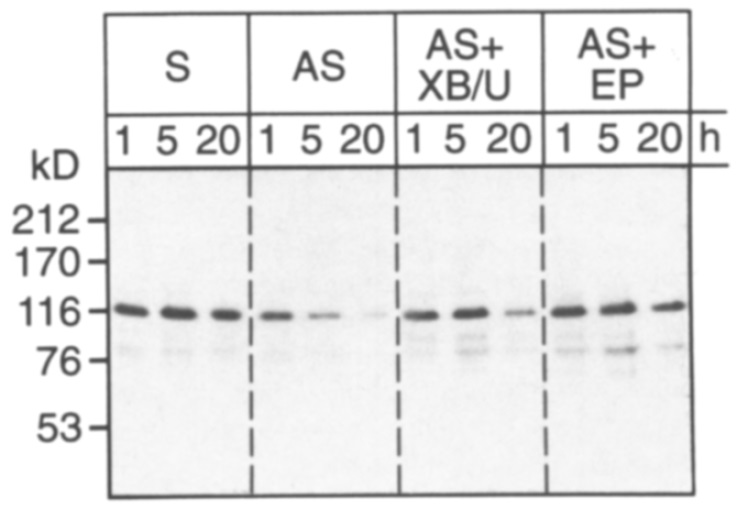 Fig. 4. Antisense treatment prevents de novo synthesis of cadherin protein.